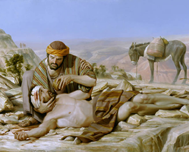 Jesús respondió: Bajaba un hombre de Jerusalén a Jericó, y cayó en manos de salteadores, que, después de despojarle y golpearle, se fueron dejándole medio muerto. Casualmente, bajaba por aquel camino un sacerdote y, al verle, dio un rodeo. De igual modo, un levita que pasaba por aquel sitio le vio y dio un rodeo. Pero un samaritano que iba de camino llegó junto a él, y al verle tuvo compasión; y, acercándose, vendó sus heridas, echando en ellas aceite y vino; y montándole sobre su propia cabalgadura, le llevó a una posada y cuidó de él. Al día siguiente, sacando dos denarios, se los dio al posadero y dijo: "Cuida de él y, si gastas algo más, te lo pagaré cuando vuelva." ¿Quién de estos tres te parece que fue prójimo del que cayó en manos de los salteadores? El dijo: «El que practicó la misericordia con él. Jesus le Díjo: “Anda y haz tú lo mismo”.
